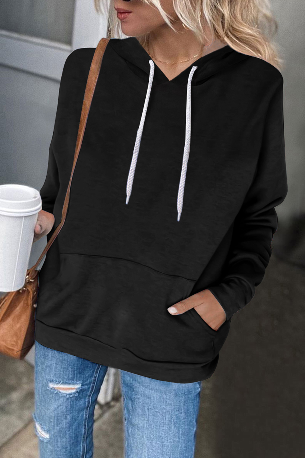 Black Drawstring Long Sleeve Hoodie with Kangaroo Pocket