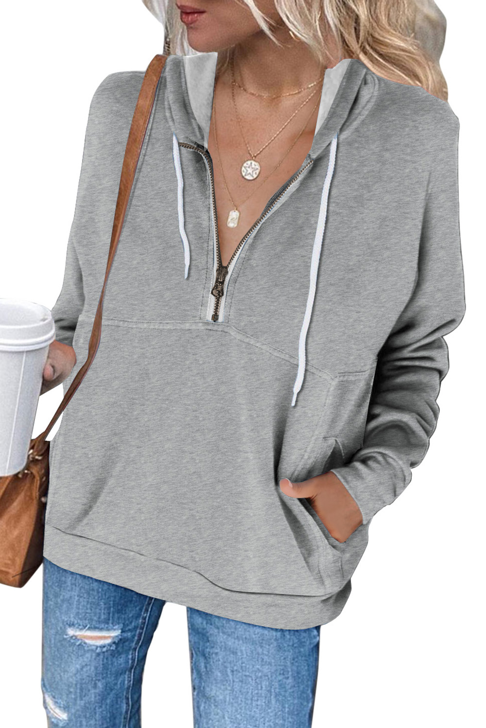 Gray Half Zip Long Sleeve Hoodie with Pocket