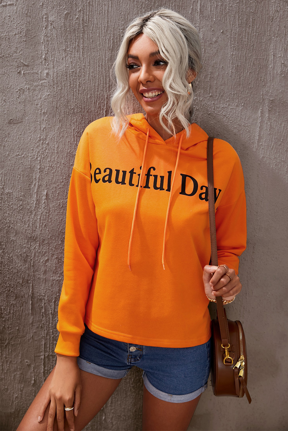 Pink Drawstring Long Sleeve Hoodie with Kangaroo Pocket