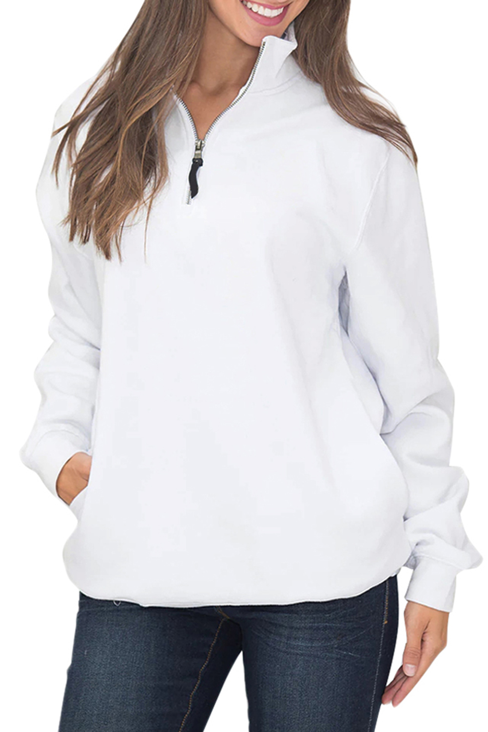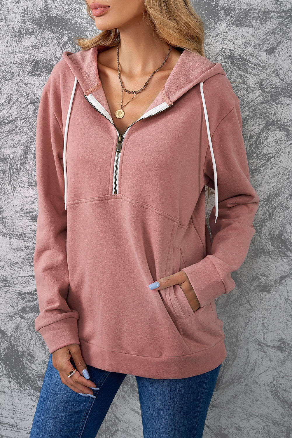 Pink Half Zip Long Sleeve Hoodie with Pocket